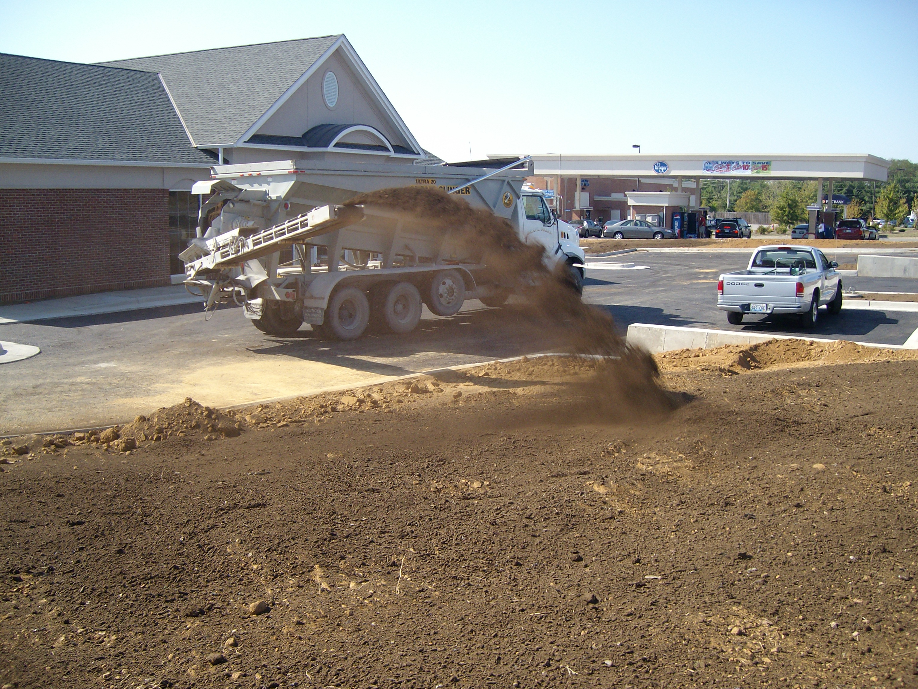 There is no other method in the world that is more efficient and contaminate free than using a stone slinger to distribute top soil.